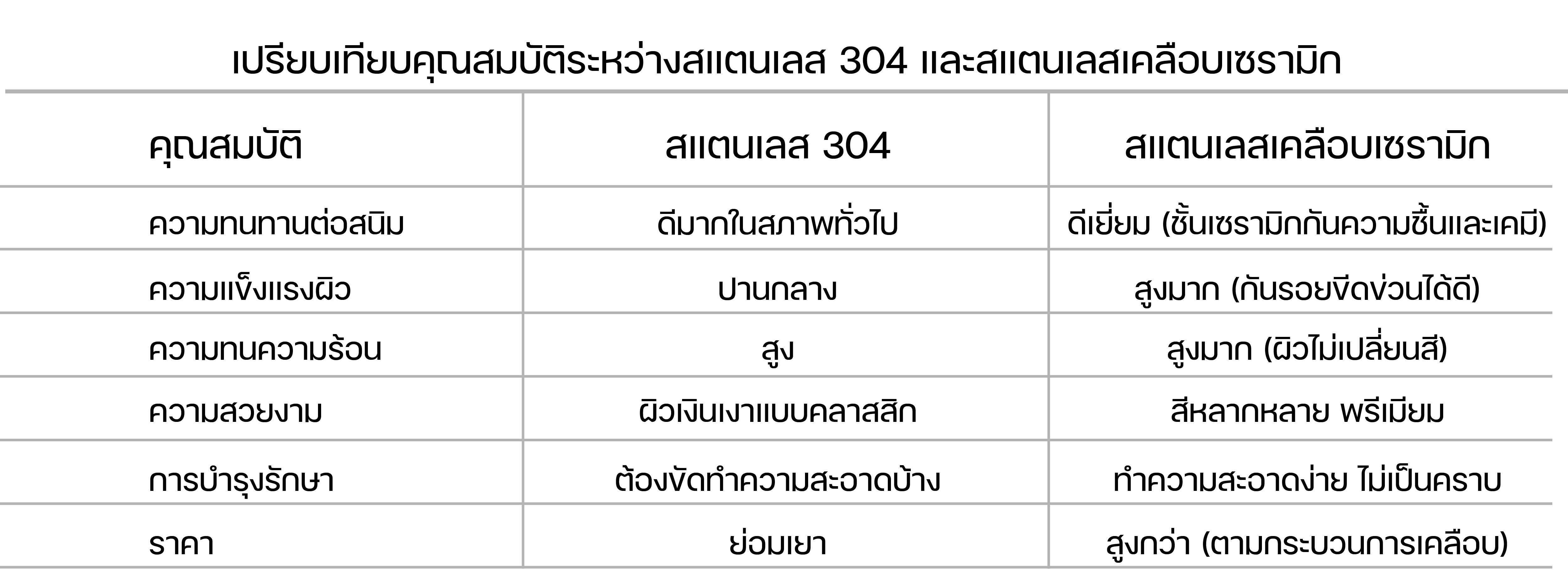 การเลือกว่าจะใช้สแตนเลส 304 หรือสแตนเลสเคลือบเซรามิก ขึ้นอยู่กับ จุดประสงค์ และ สภาพแวดล้อม ของการใช้งาน